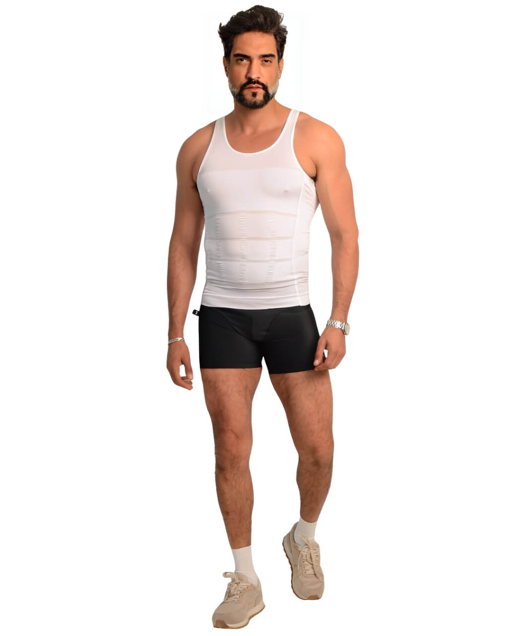 A tecnologia trifocal de compressão atua nos pontos certos: reduz medidas do abdômen, corrige a postura e disfarça a ginecomastia.